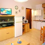 Rummen är utrustade med individuell klimatkontroll, TV och skafferi, samt har ett kök. Denna lägenhet erbjuder boende för upp till 5 gäster. Det finns duschkabin och bidé i ett badrum.